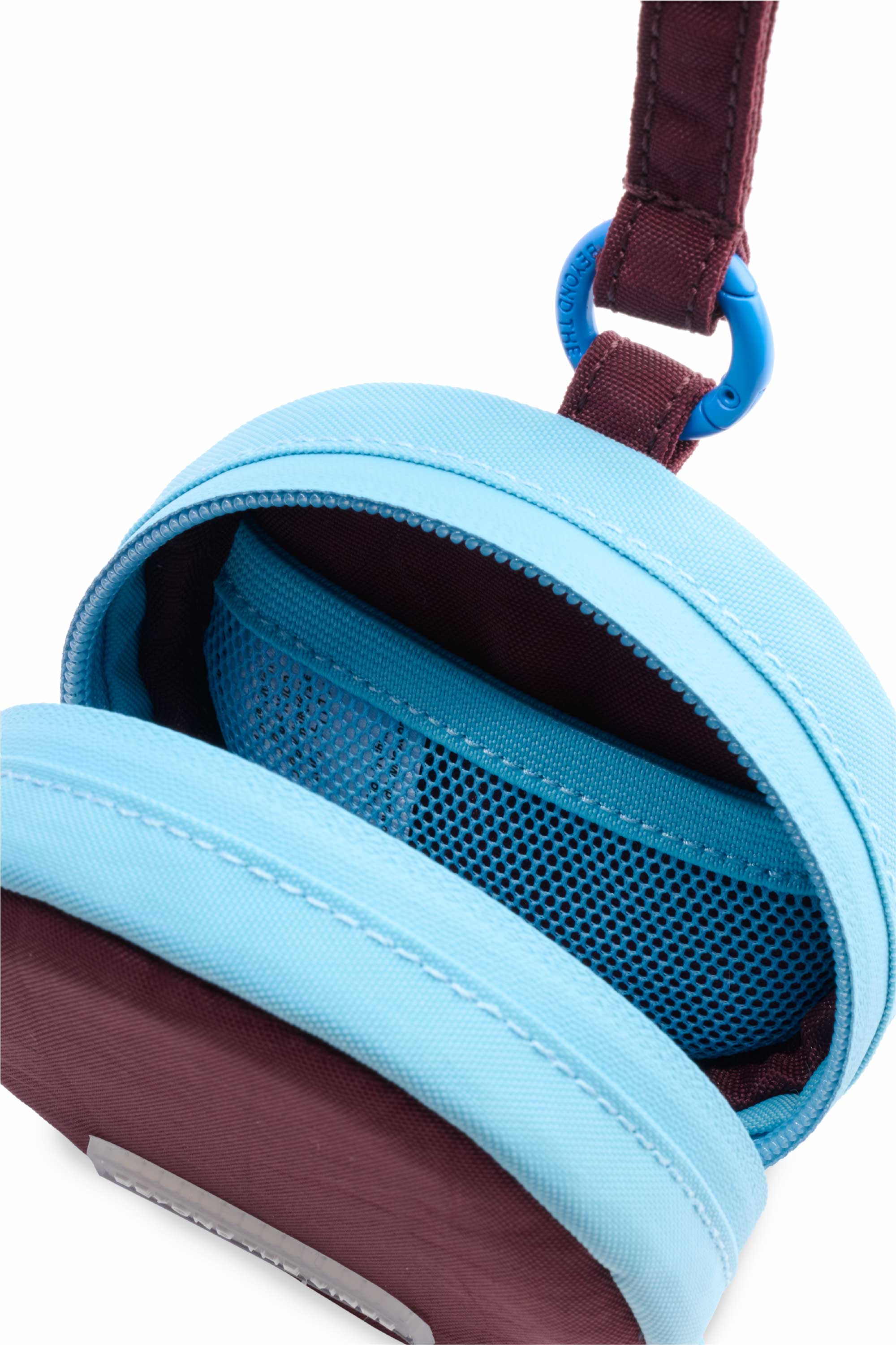 Perfect for clipping onto your bags or clothing for extra storage and easier access to your smaller items, this colourblock round pouch is designed with a zipper closure and inner pockets. It is finished with a wrist loop and an engineer blue detachable carabiner.
