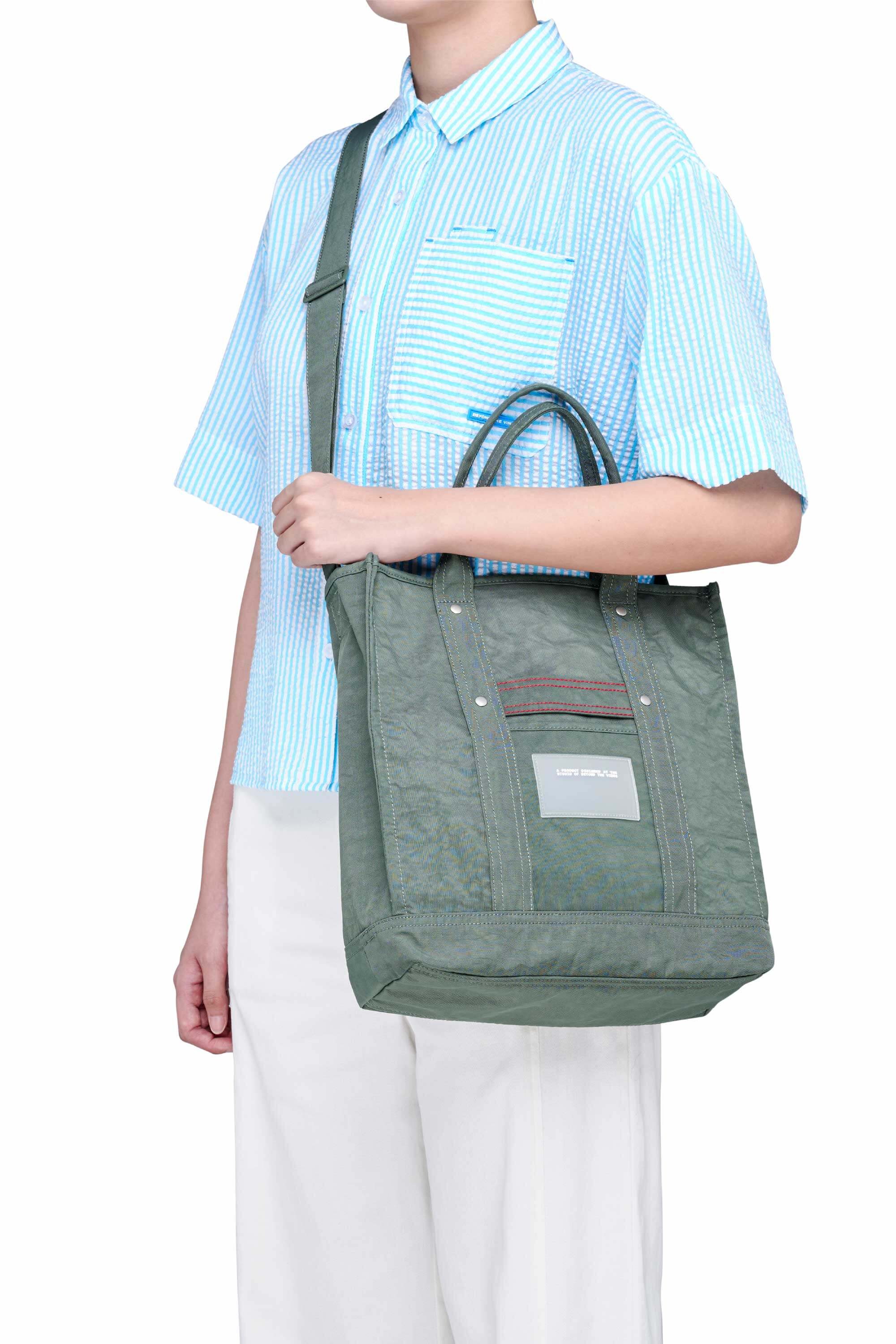The Crunch Carryall 02 fits a 13" laptop, water bottle, umbrella, and your daily essentials.