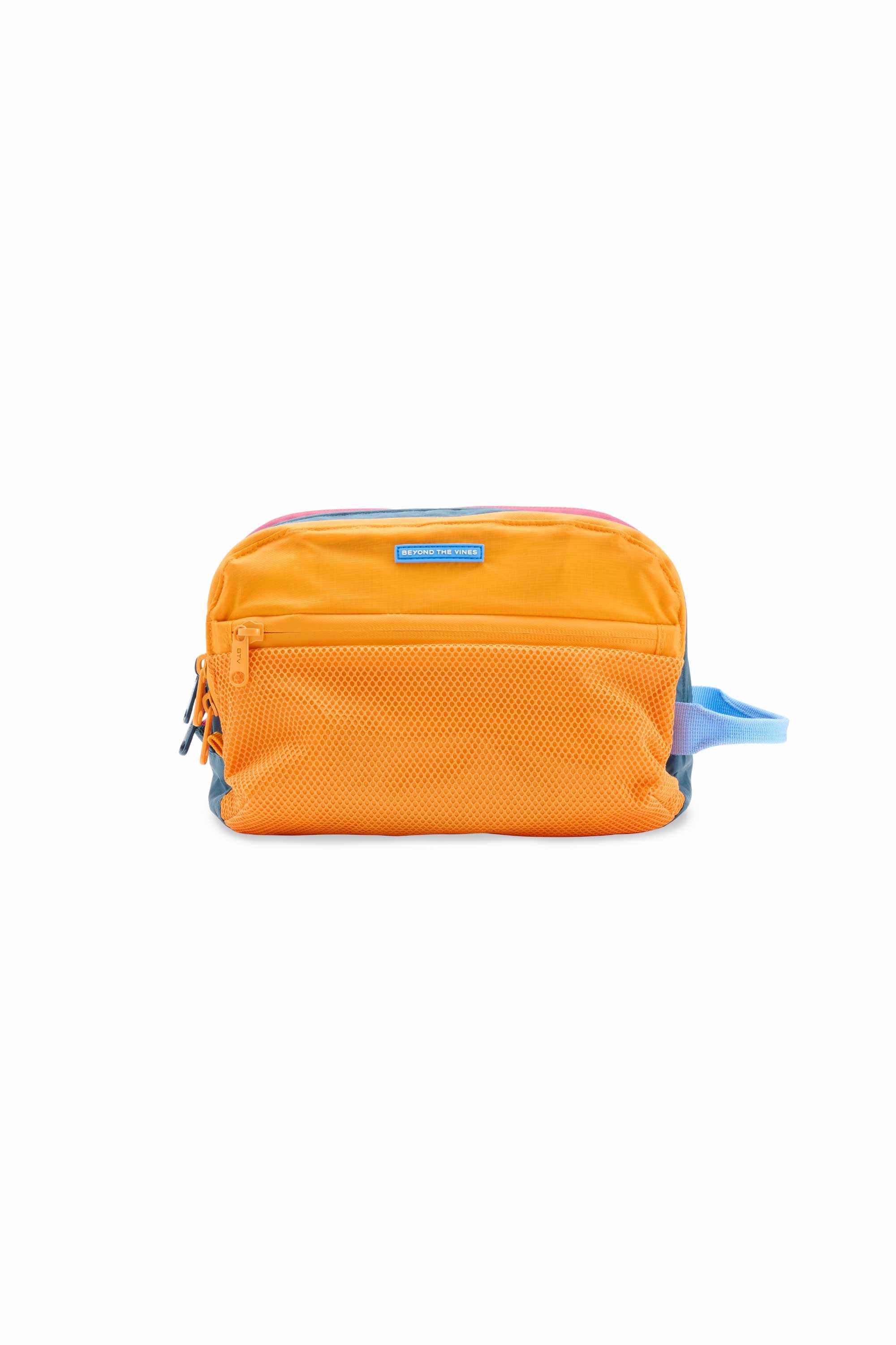 Made with 100% recycled nylon, this colourblocked pouch is designed with 3 roomy zipper compartments and inner pockets to further organise your items. Lightweight and water resistant, this pouch also features waterproof zippers and a webbing handle. It is finished with an inner carabiner strap to attach your jewelry or keys to, an outer mesh zipper pocket on the back and a front rubber brand label.