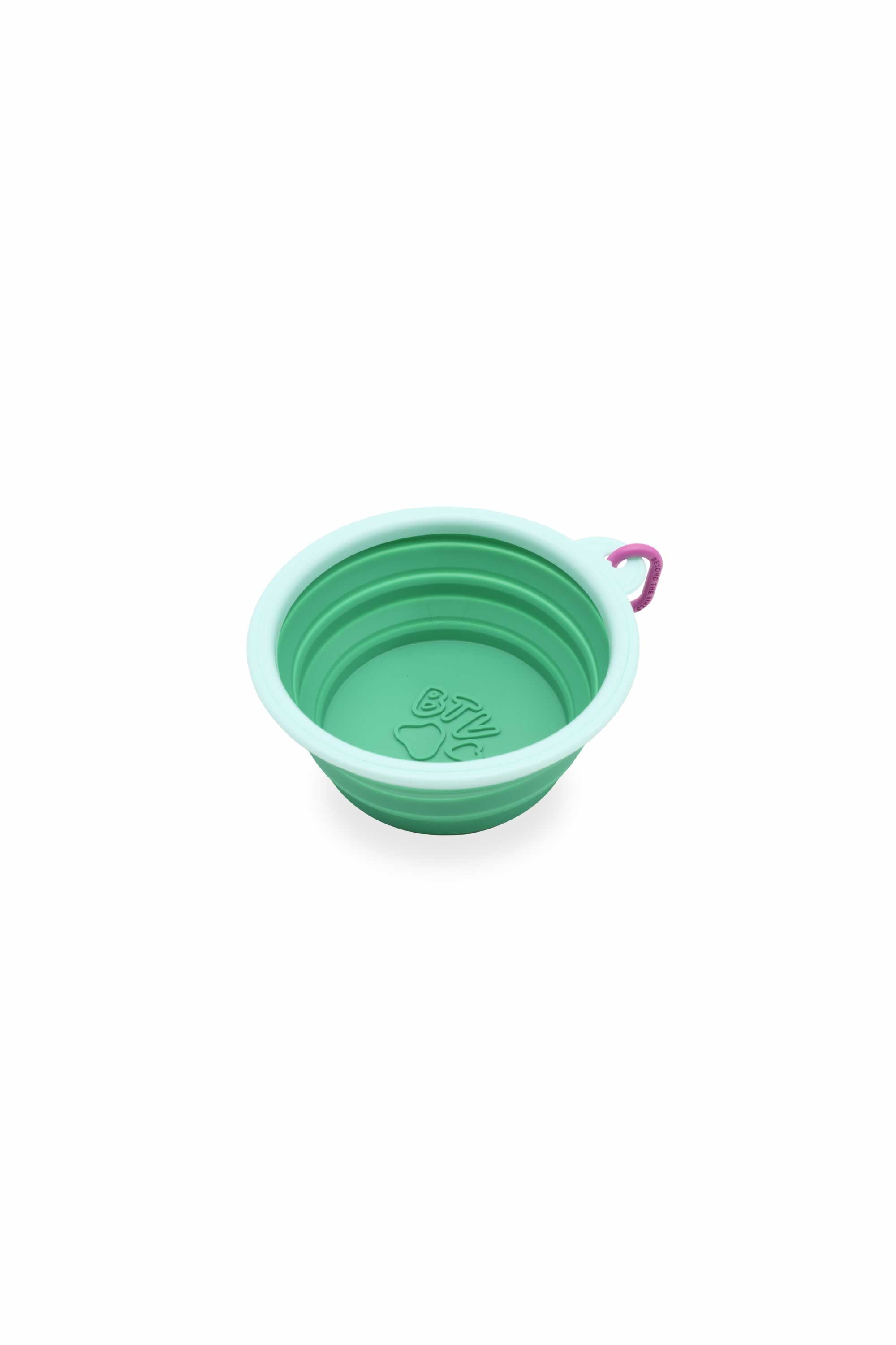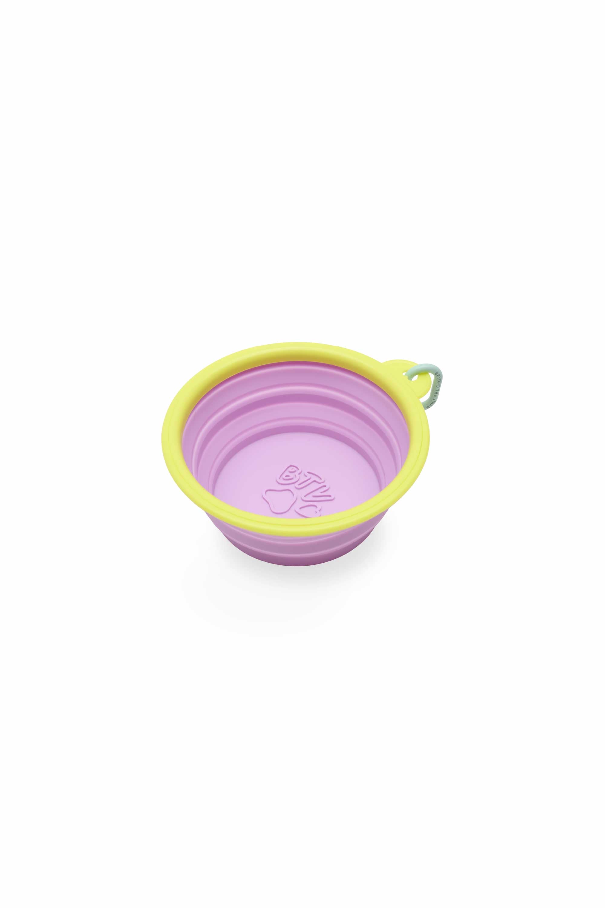 This colourblock collapsible bowl is designed for on-the-go convenience. Lightweight and easy to fold down, it features a D-ring attachment so you can hook it onto your bag or leash for quick access.