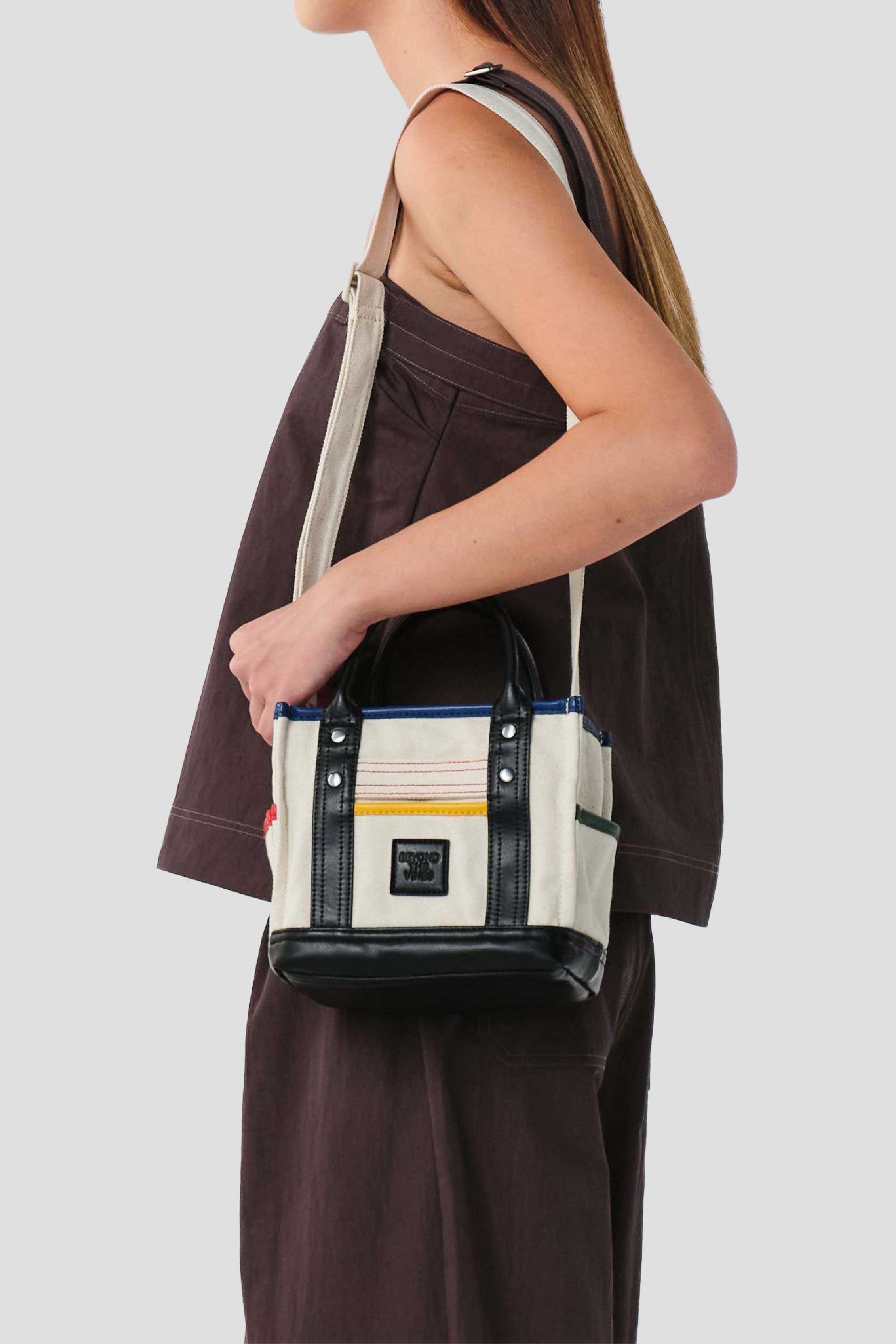 Designed for everyday practicality, the Leather Canvas Carryall 0.5 is crafted from durable canvas with contrast recycled leather trim and branded patch. It features short handles and an adjustable crossbody strap, along with a secure zip closure for easy carry.
