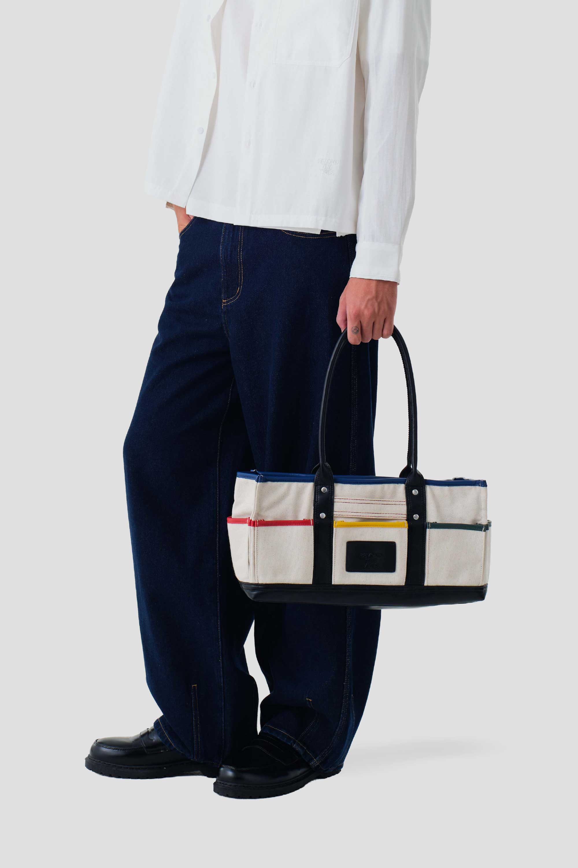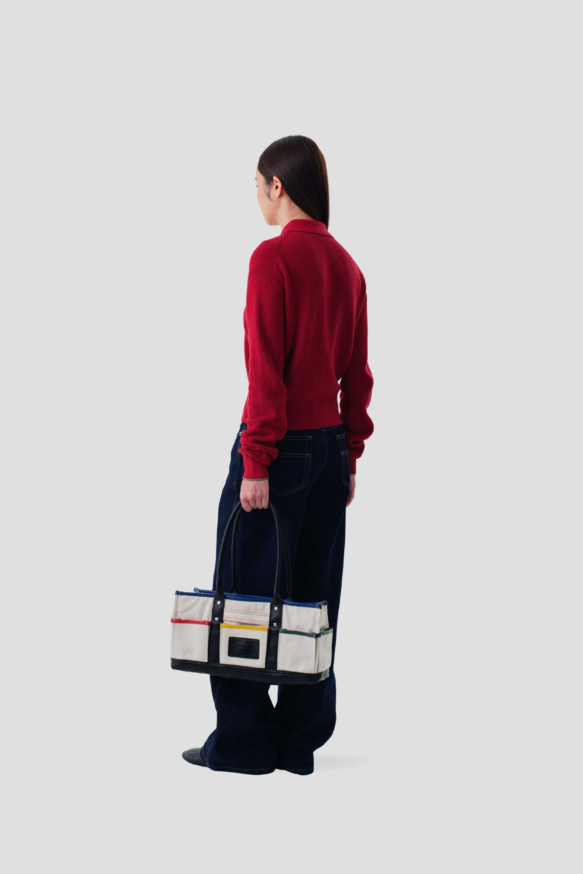 Designed for everyday use, the Leather Canvas Carryall 1.5 is crafted from durable canvas in a structured landscape silhouette. It features longer shoulder straps and a secure zip closure for easy, reliable carry.
