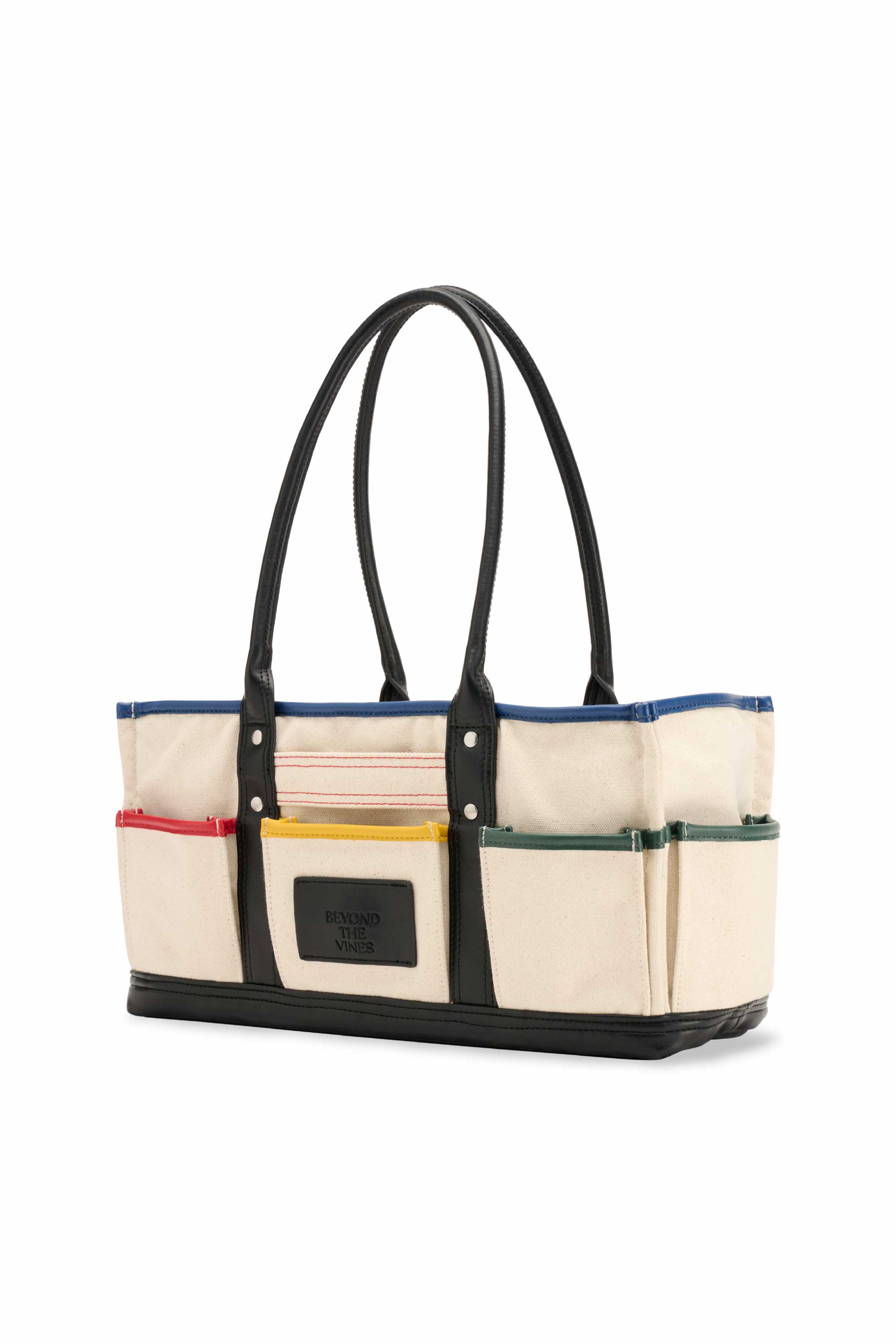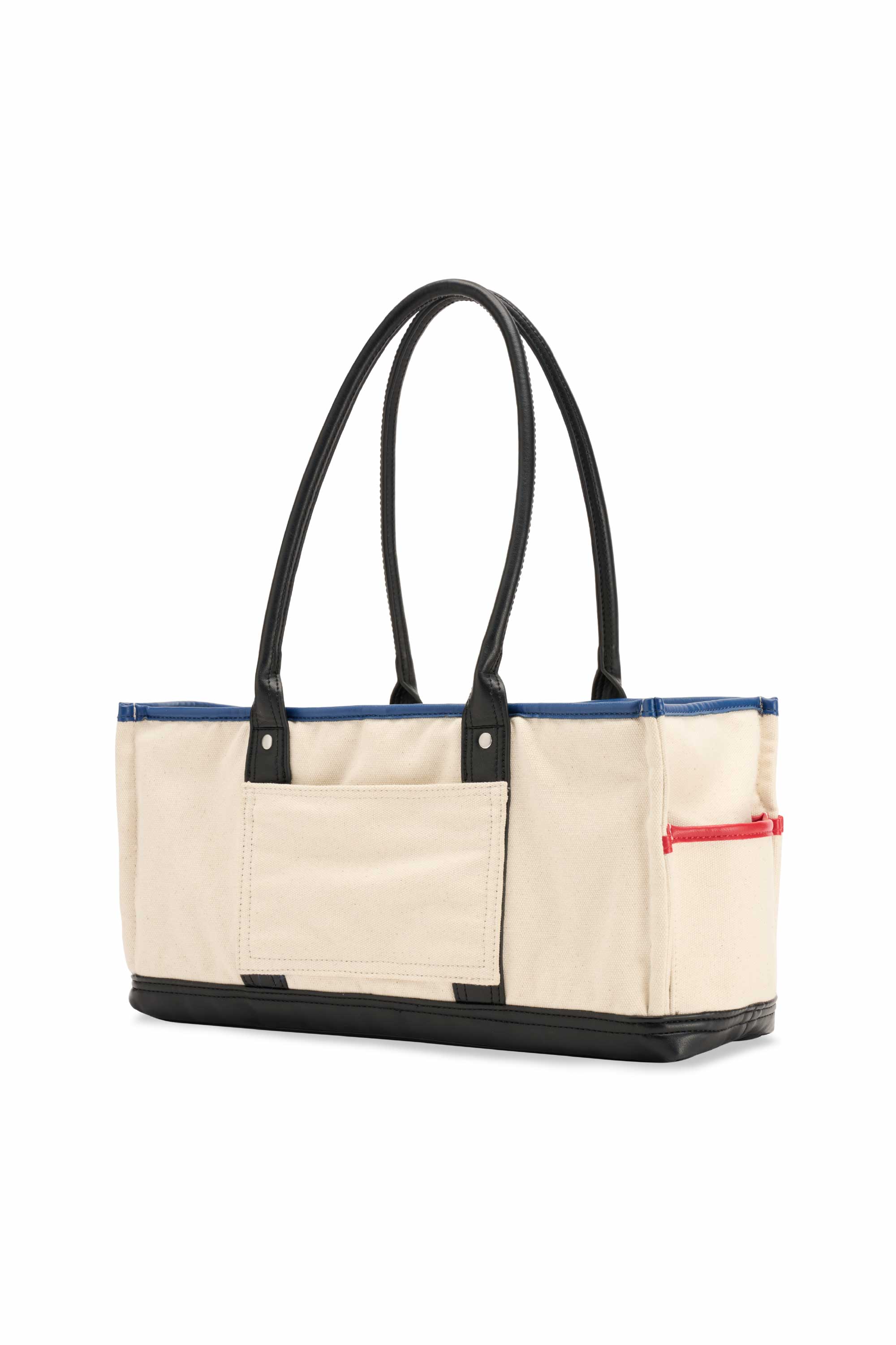 The Leather Canvas Carryall 1.5 fits an iPad Pro, water bottle, umbrella, and your daily essentials.